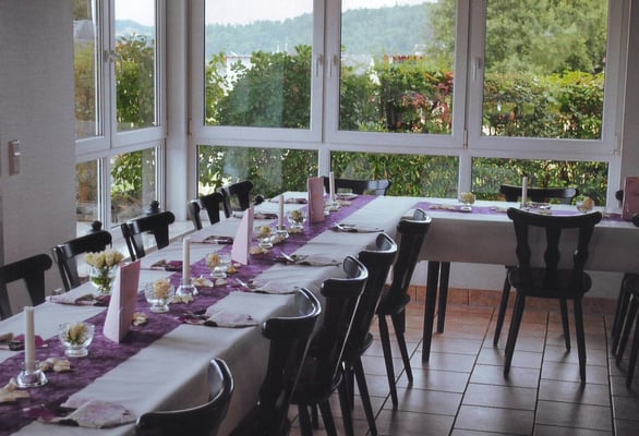 Es bietet sich ideal für Feierlichkeiten an. Musikbeschallung sowie Küche mit Spülmaschine sind vorhanden.